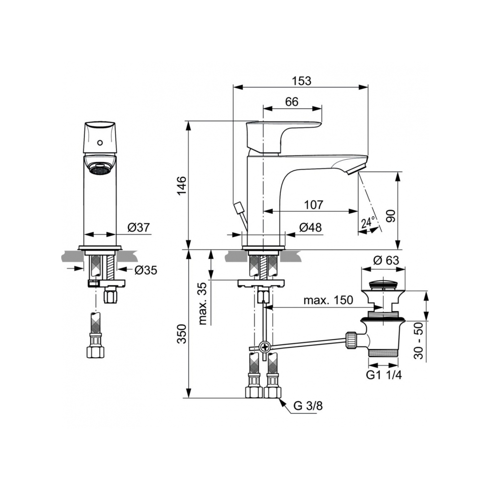 Смеситель для раковины Ideal (Идеал) Standard Connect Air A7007AA хром