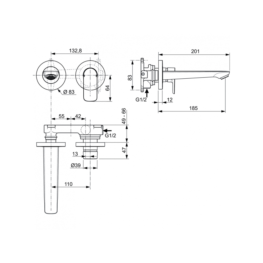 Смеситель для раковины Ideal (Идеал) Standard Connect Air скрытого монтажа A7029AA хром
