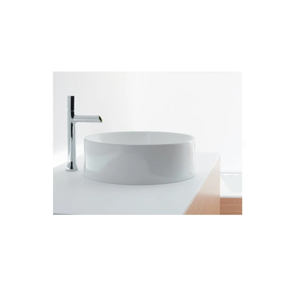 Сочетание урбанизма и японских мотивов представляет собой смеситель для раковины Jacob Delafon Toobi E8990-CP. Округлый хромированный корпус изготовлен из пищевой латуни, которая отличается прочностью, экологичностью и стойкостью к коррозии. Через усеченную фиксированную трубку подается ламинарная струя единый водный поток в виде десятка тонких струй. Выбрать свой дизайн помогут три пластиковых аэратора, входящих в комплект: черный, зеленый и белый.