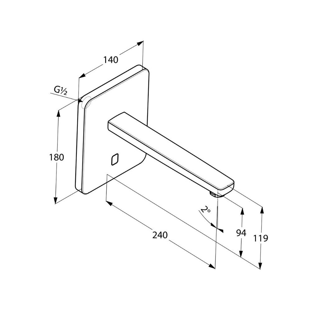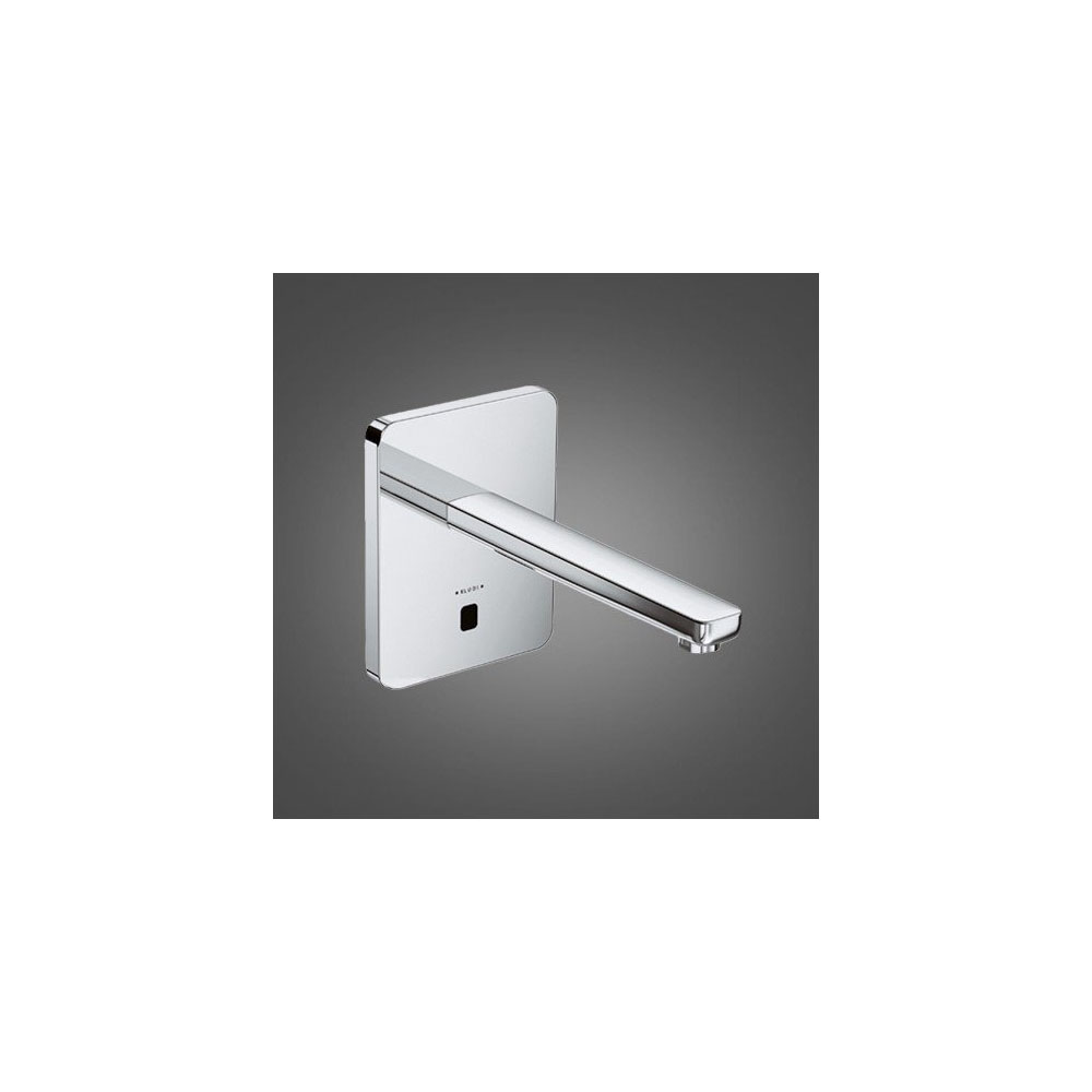 KLUDI ZENTA, артикул 3840205, электронный смеситель на умывальник, настенный монтаж, внешняя монтажная часть, питание от сети 230v или от литиевой батареи 6v cr-p2, каскадный аэратор m 24 x 1, оптический датчик движения, длина излива 240 мм, розетка soft edge, расход воды в режиме 5 л/мин при давлении 3 бара. В комплект поставки не входят и докупаются отдельно - встраивамый элемент 38 001 или 38 002 - возможность предварительной установки температуры. В комплект поставки не входят и докупаются отдельно - внутрение части 38 003 или 38 004.