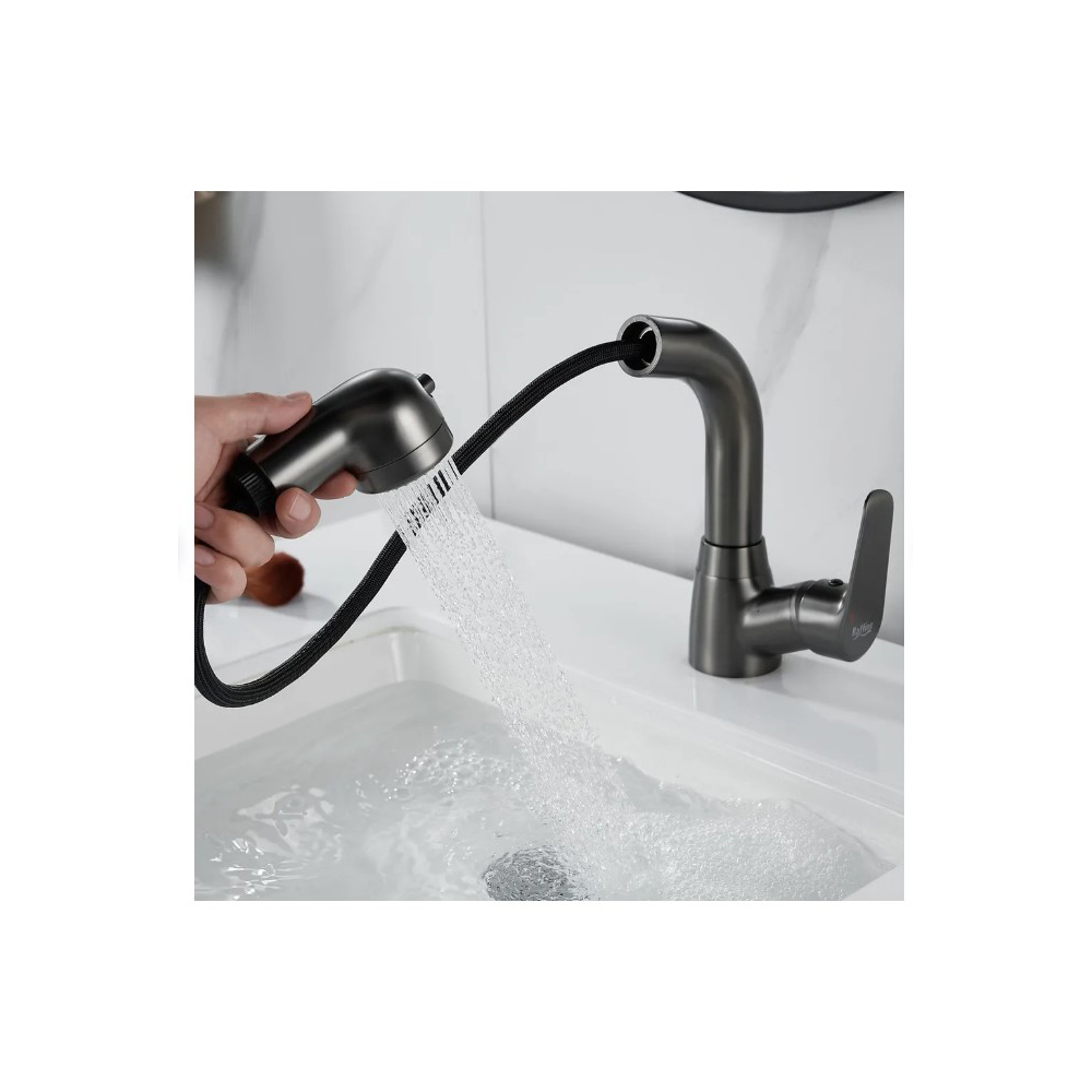 Смеситель для раковины многофункциональный Raffine (Раффин) F291T, оружейная сталь