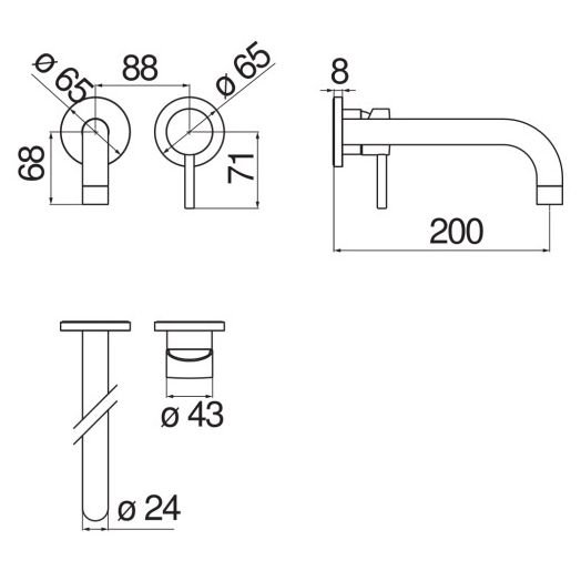 Длина излива (мм):200 p>