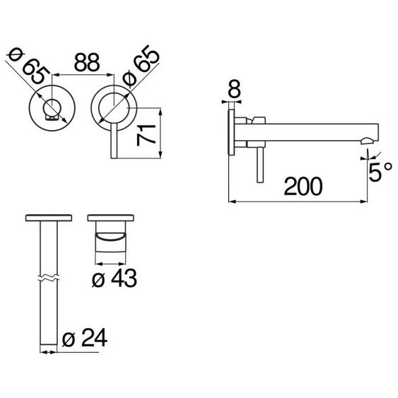 Смеситель для раковины Paini (Паини) Domus (Домус) встраиваемый 18PJ208PZ брашированное золото