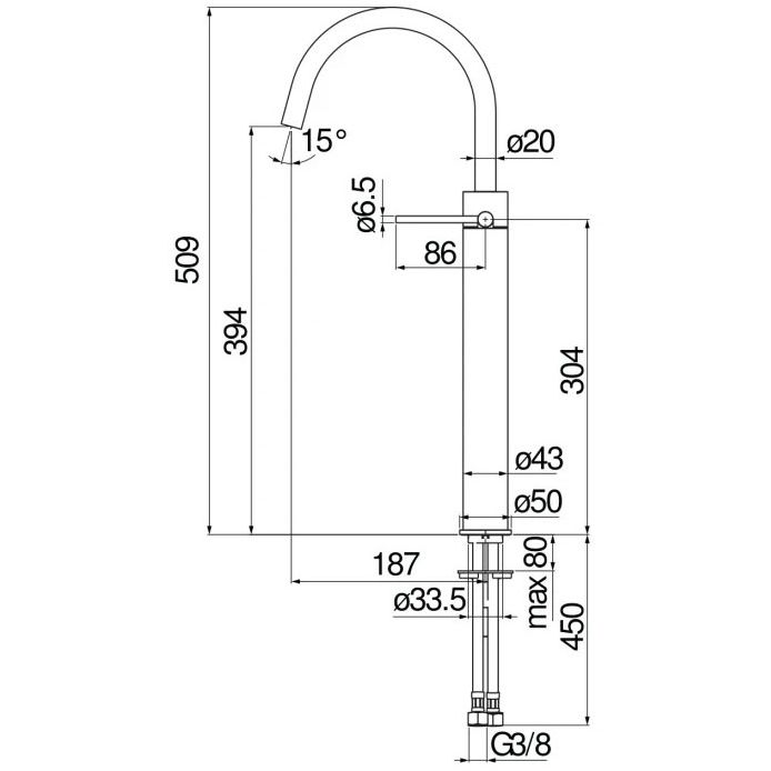 Высота излива (мм):394 p>