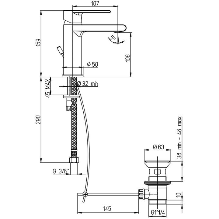 Смеситель для раковины Paini (Паини) Ghibli с донным клапаном 44CR211KM хром