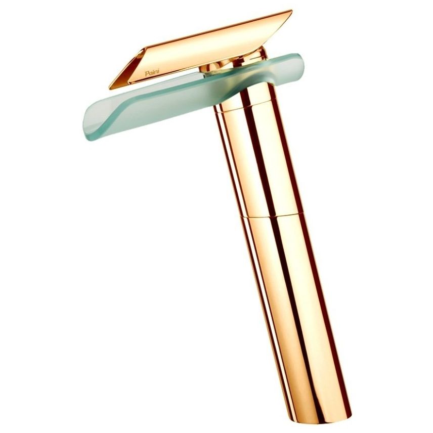 Смеситель для раковины Paini (Паини) Morgana без донного клапана высокий, излив стекло 73OP205VRLL золото