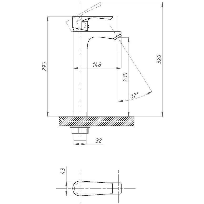 Высота излива (мм):235 p>