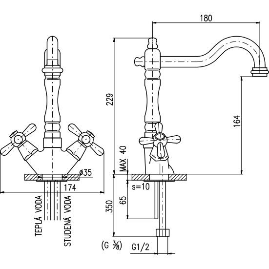 Смеситель универсальный Rav Slezak (Рав Слезак) Morava MK502.5/28Z, золото