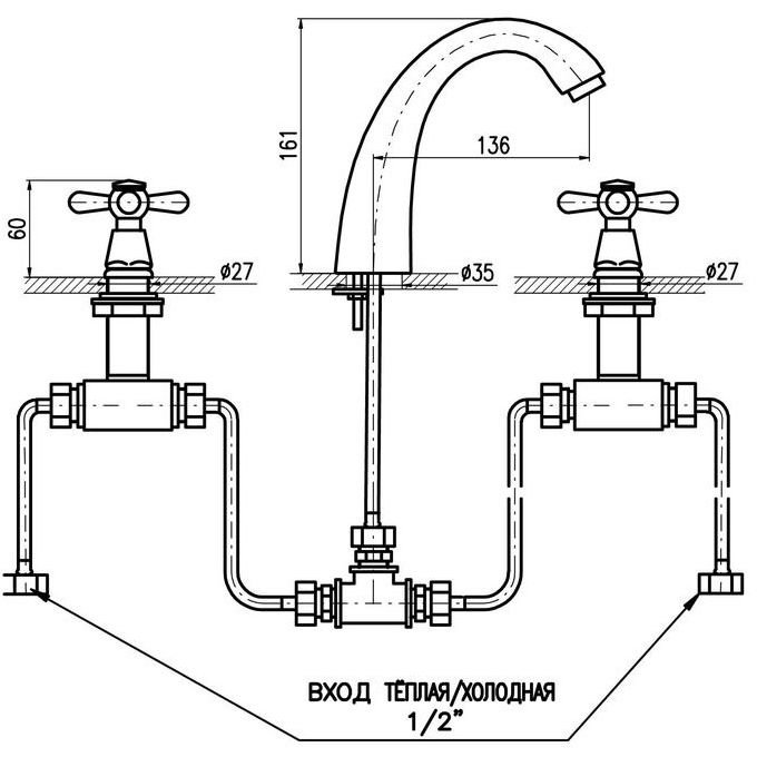 Кран угловой с отр. 1/2 х 3/4 хром (квадрат) Vieir (Виеир) (VER41)