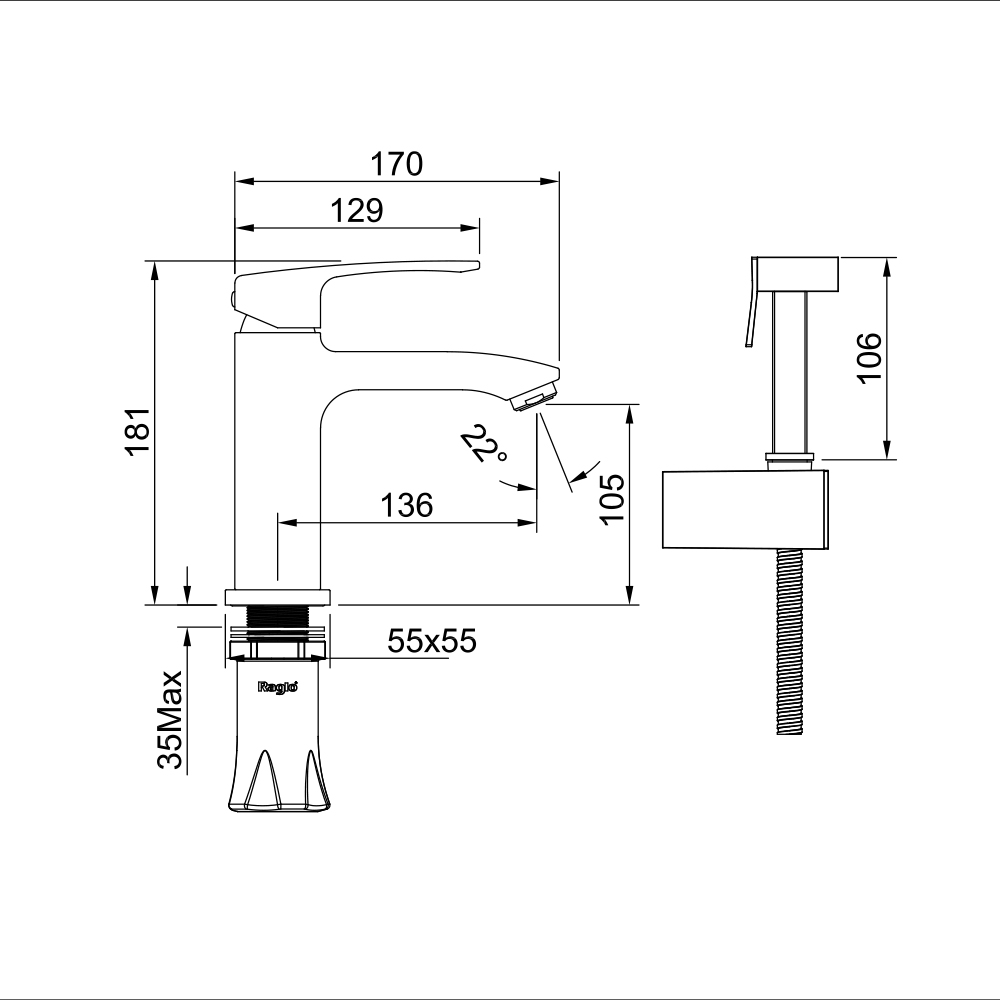 Смеситель для раковины с гигиеническим душем Raglo (Рагло) R01.12, хром