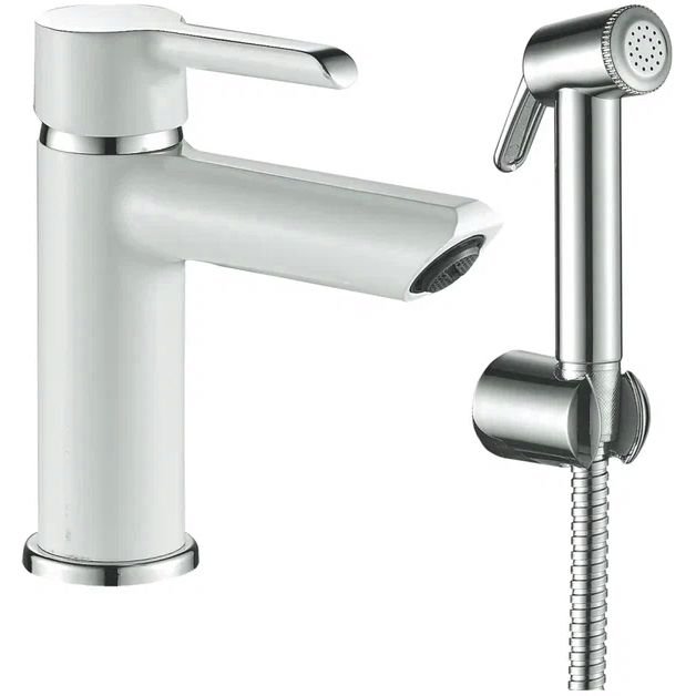 Смеситель для раковины с гигиеническим душем Shevanik (Шеваник) S6071F, белый/хром