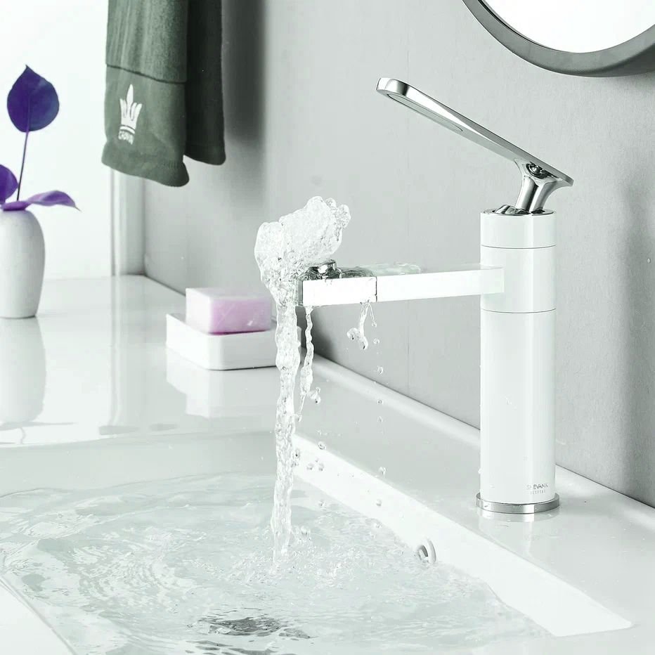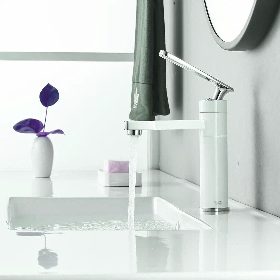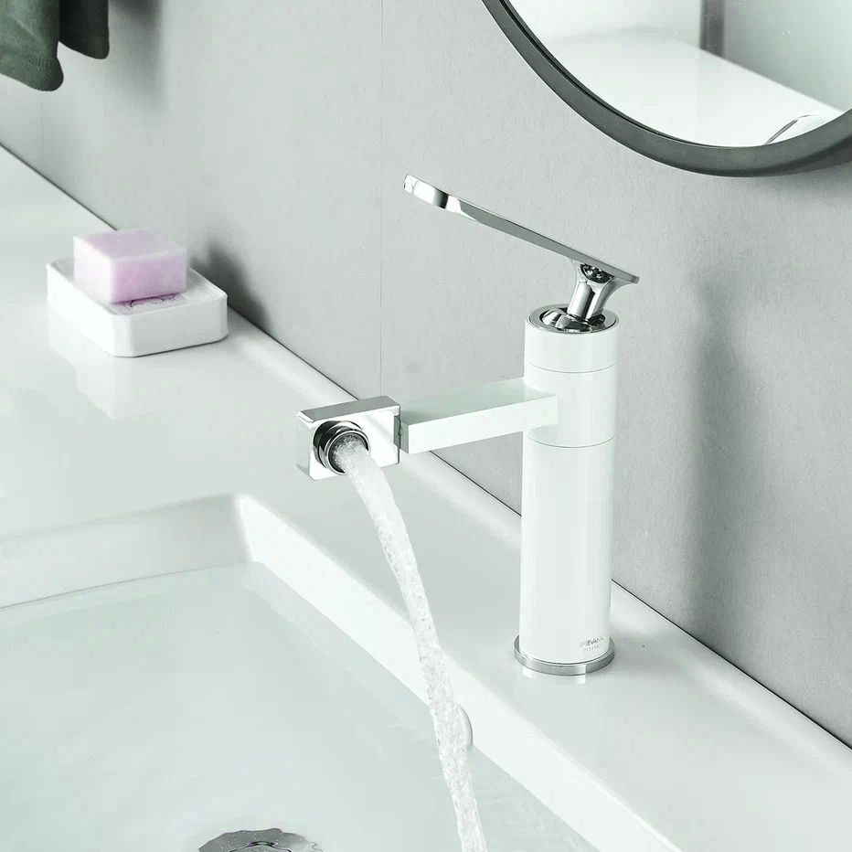 Смеситель для раковины с поворотным носиком Shevanik (Шеваник) S6601F, белый/хром