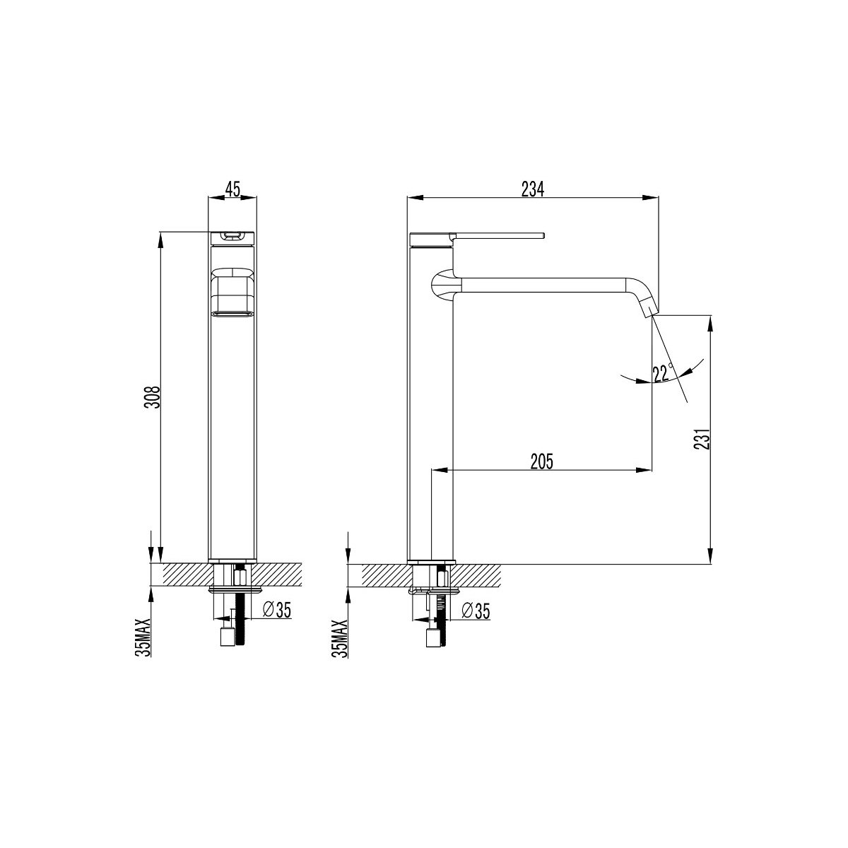 Смеситель для раковины высокий без донного клапана Azario (Азарио) Vincente AZ-VPV168R26C хром