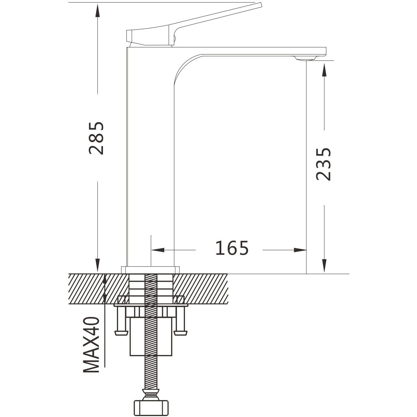 Высота излива (мм):165 p>