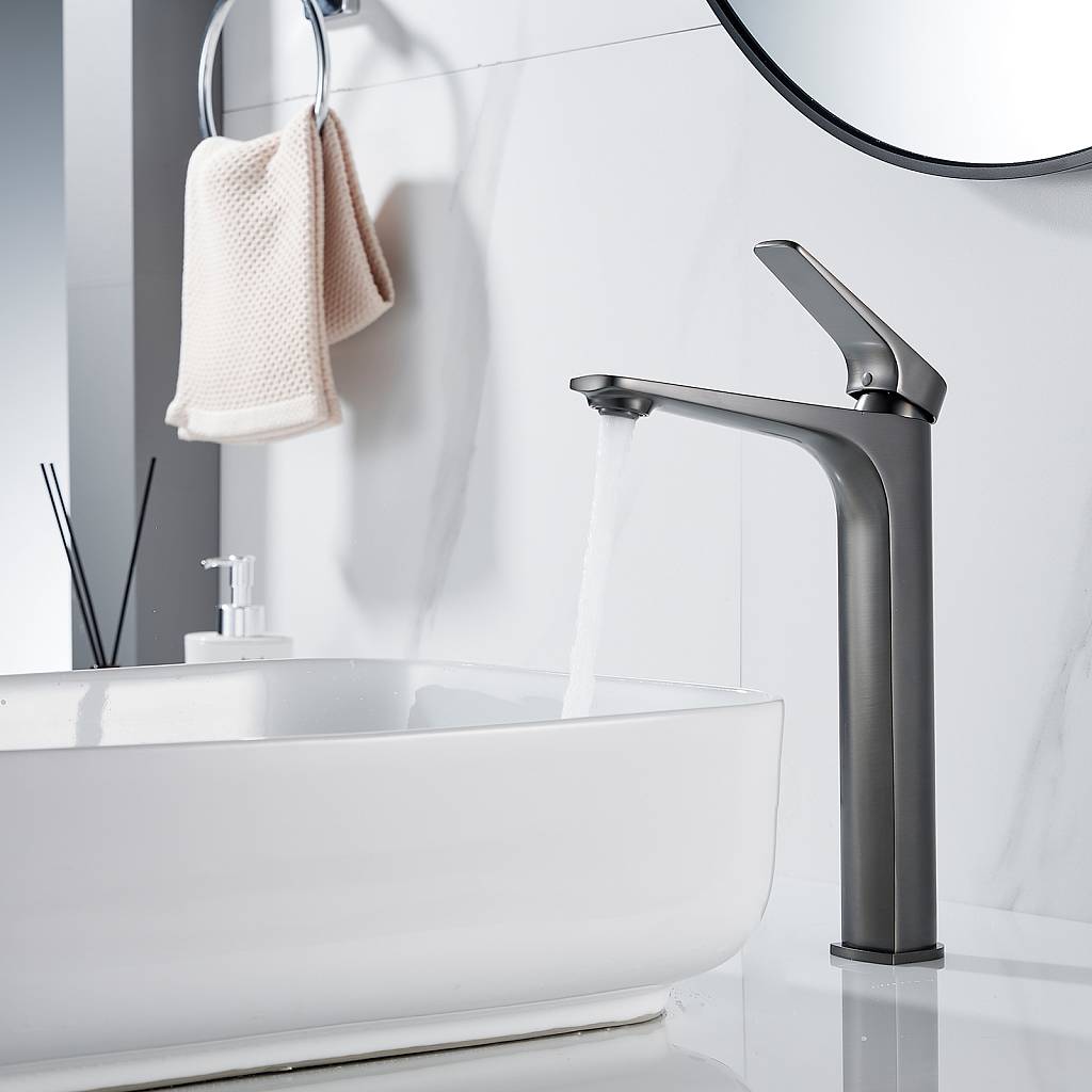 Смеситель для раковины высокий Shevanik (Шеваник) S4211T, оружейная сталь