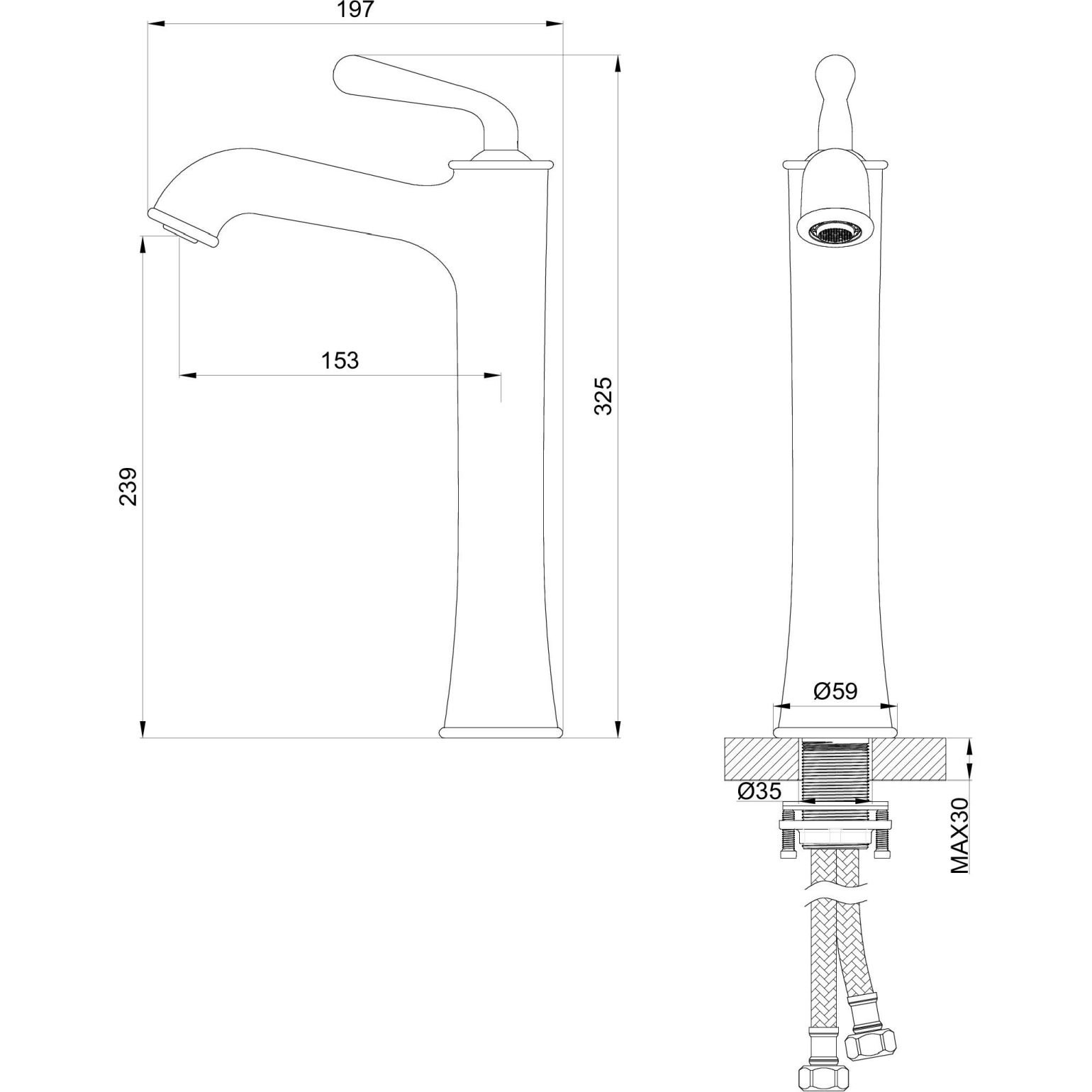 Смеситель для раковины высокий WONZON & WOGHAND, Черный матовый (WW-88239008-MB)