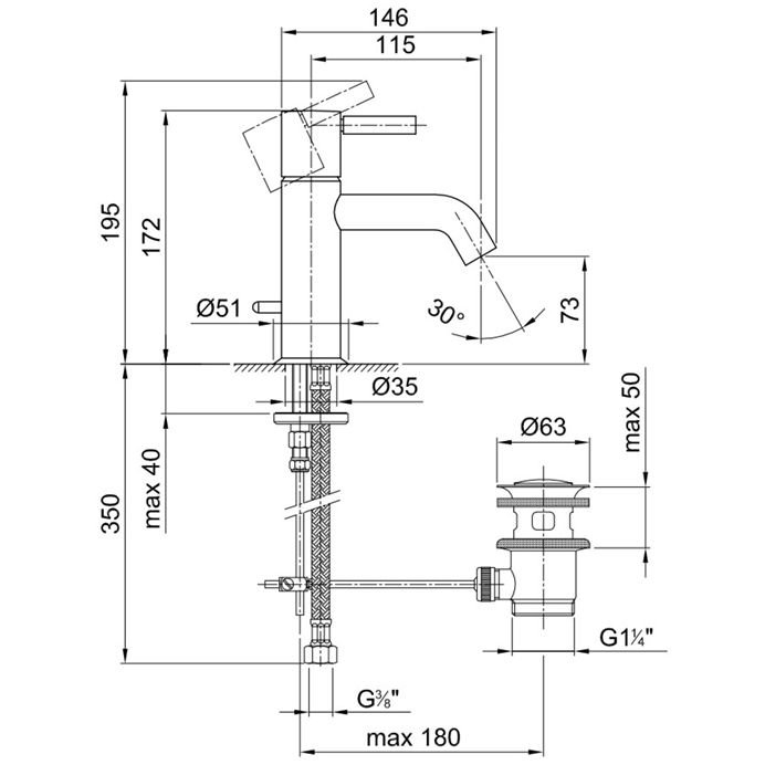 Fantini Nostromo Смеситель для раковины, 1 отв., с донным клапаном, излив 115мм, цвет: хром