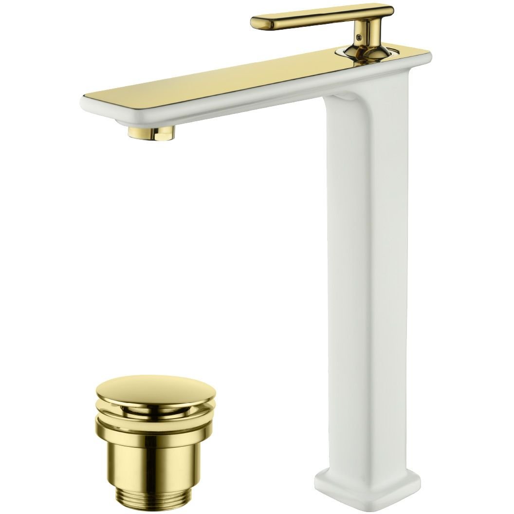 Смеситель Lemark (Лемарк) Mista LM6409WG для умывальника высокий, монолитный, белый/золото