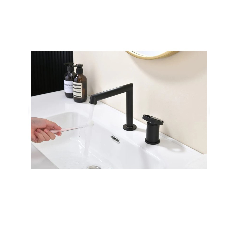 Ключевой особенностью данного смесителя является простота установки. Он разработан для установки на борт раковины и подходит для большинства стандартных моделей с двумя отверстиями. Это делает его отличным выбором как для новых, так и для обновляемых пространств. Удобные ручки управления обеспечивают точную настройку температуры и напора воды, что добавляет комфорт в повседневное использование.