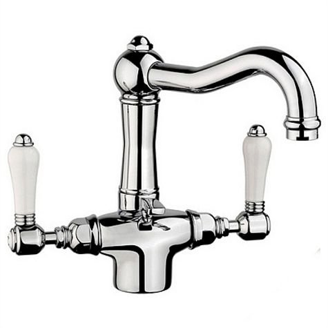 Nicolazzi P.M.Blanc Смеситель для раковины с 2мя ручками, на 1 отв., с донным клапаном, излив 165мм, цвет: хром