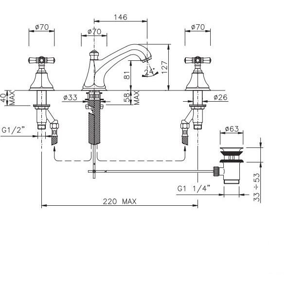 Смеситель Nicolazzi (Николации) Teide Four для раковины на 3 отверстия, с донным клапаном, цвет: бронза 1908BZ45