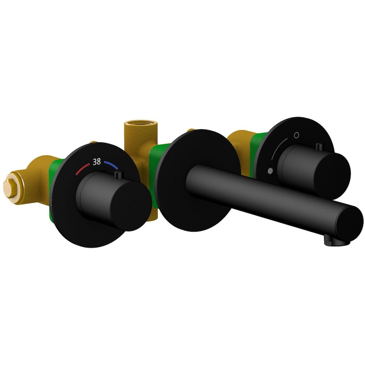 Черная сантехника становится все более популярной для ванных комнат из-за способности расставлять акценты. Встраиваемый смеситель Timo Saona 2382 предназначен для монтажа в твердой или полой стене. Основные преимущества встроенного смесителя: коммуникации, крепления и механизмы спрятаны в стену и видны только декоративные элементы, установить встроенный смеситель можно в любом месте. В смесителе установлен термостатический картридж для поддержания стабильной температуры воды. Регулировка температуры воды осуществляется ручкой термостата расположенной слева. Подача воды и увеличение напора осуществляется поворотом ручки расположенной справа. Сложностей монтажа не возникает при установке смесителя опытным сантехником. Внимательно изучите инструкцию по монтажу и эксплуатации. Черная сантехника требует бережного ухода.