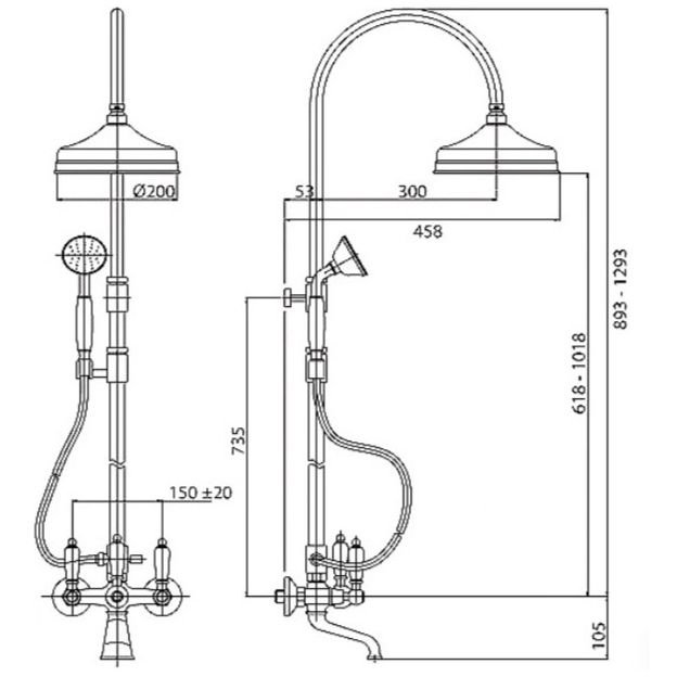 Душевая колонна Cezares (Цезарис) со смесителем для ванны, верхнего и ручного душа, хром, ручки белые FIRST-CVD-01-Bi