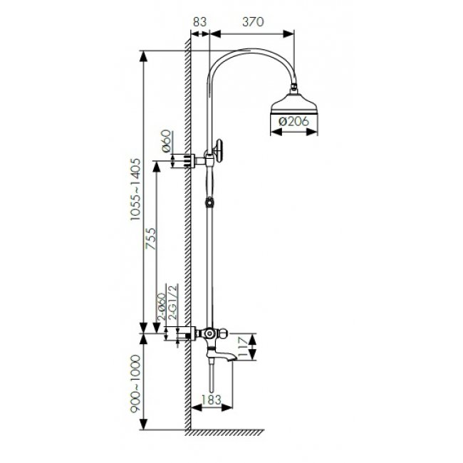 оснащение:ручной душ (душевая лейка),верхний душ (тропический),стойка / штанга, душевой шланг, крепление ручного душа p>