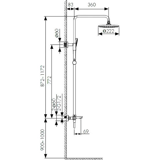 оснащение:ручной душ (душевая лейка),верхний душ (тропический),стойка / штанга, душевой шланг, крепление ручного душа p>