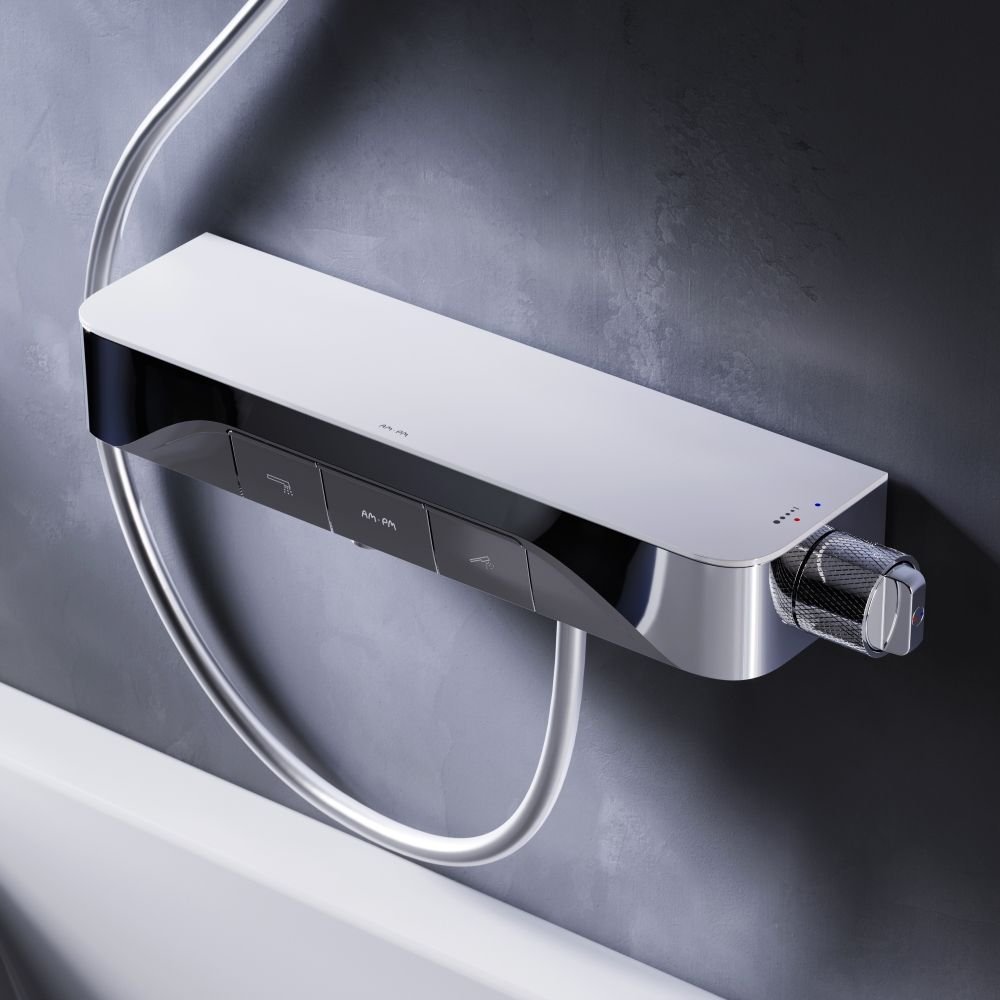 Еще больше полезного пространства: смеситель выполнен в виде вместительной полочки. Внушительный размер полки (40 см) позволяет хранить все любимые средства под рукой, а эстетичный силуэт станет настоящим украшением современной ванной комнаты.