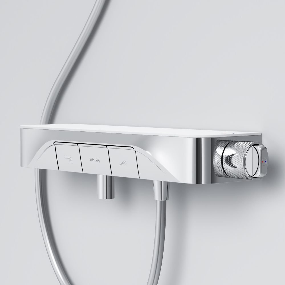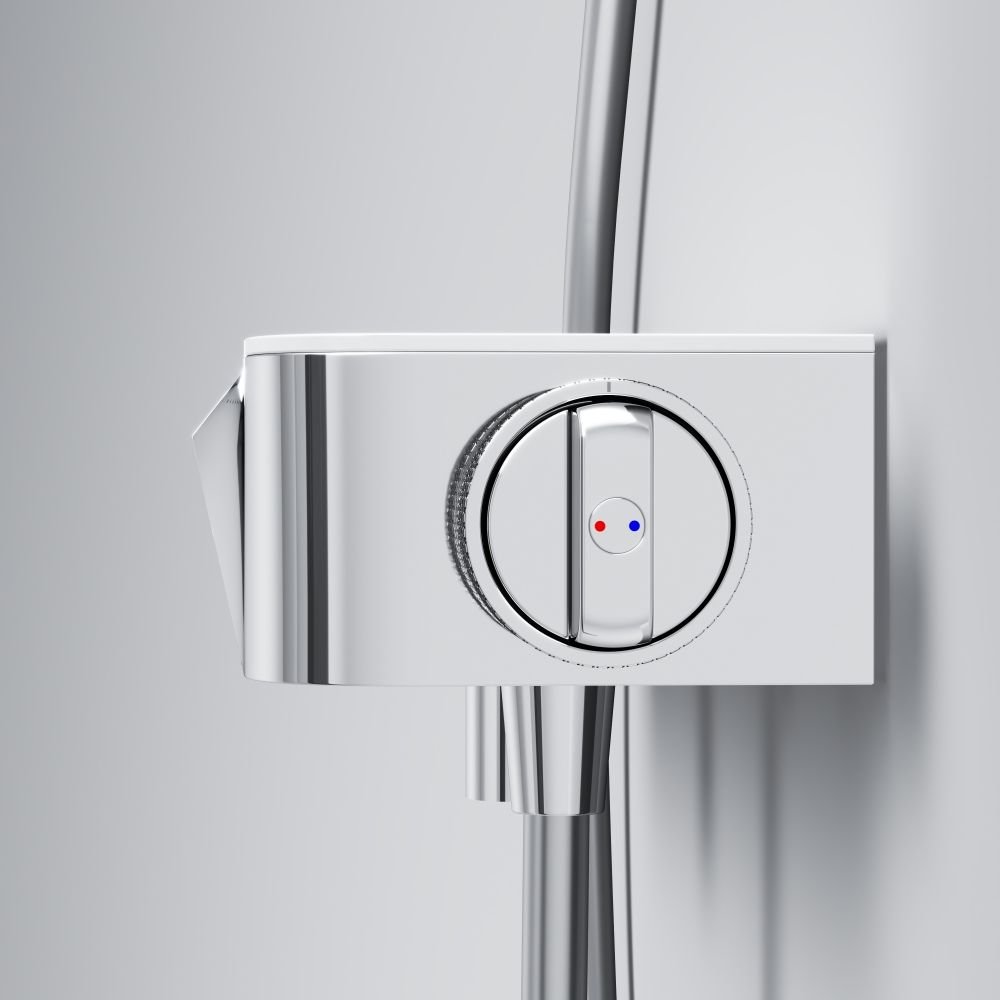Интуитивно понятное управление: всего одна удобная ручка для настройки температуры и потока воды. Благодаря специально спроектированной эргономичной ручке вы можете управлять душевым смесителем даже с мыльными руками. Переключение потоков воды осуществляется нажатием клавиши. Комбинированный способ управления и вариативность функций делают смеситель одним из самых удобных на рынке.