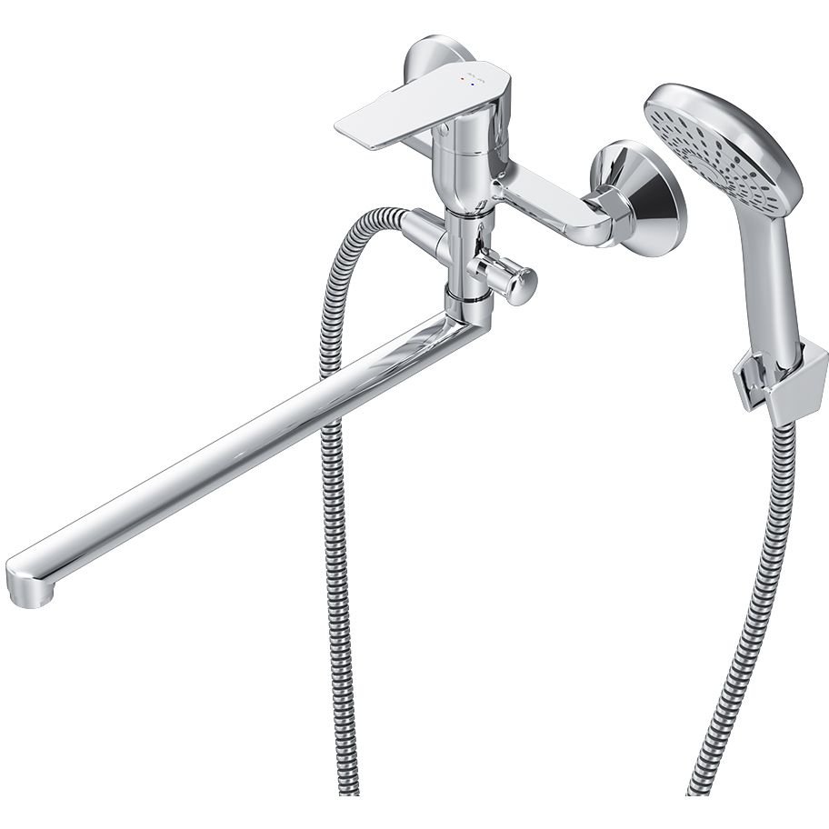 Стильное универсальное решение для ванной комнаты - качественный смеситель для ванны и душа с длинным поворотным изливом с душевым набором.