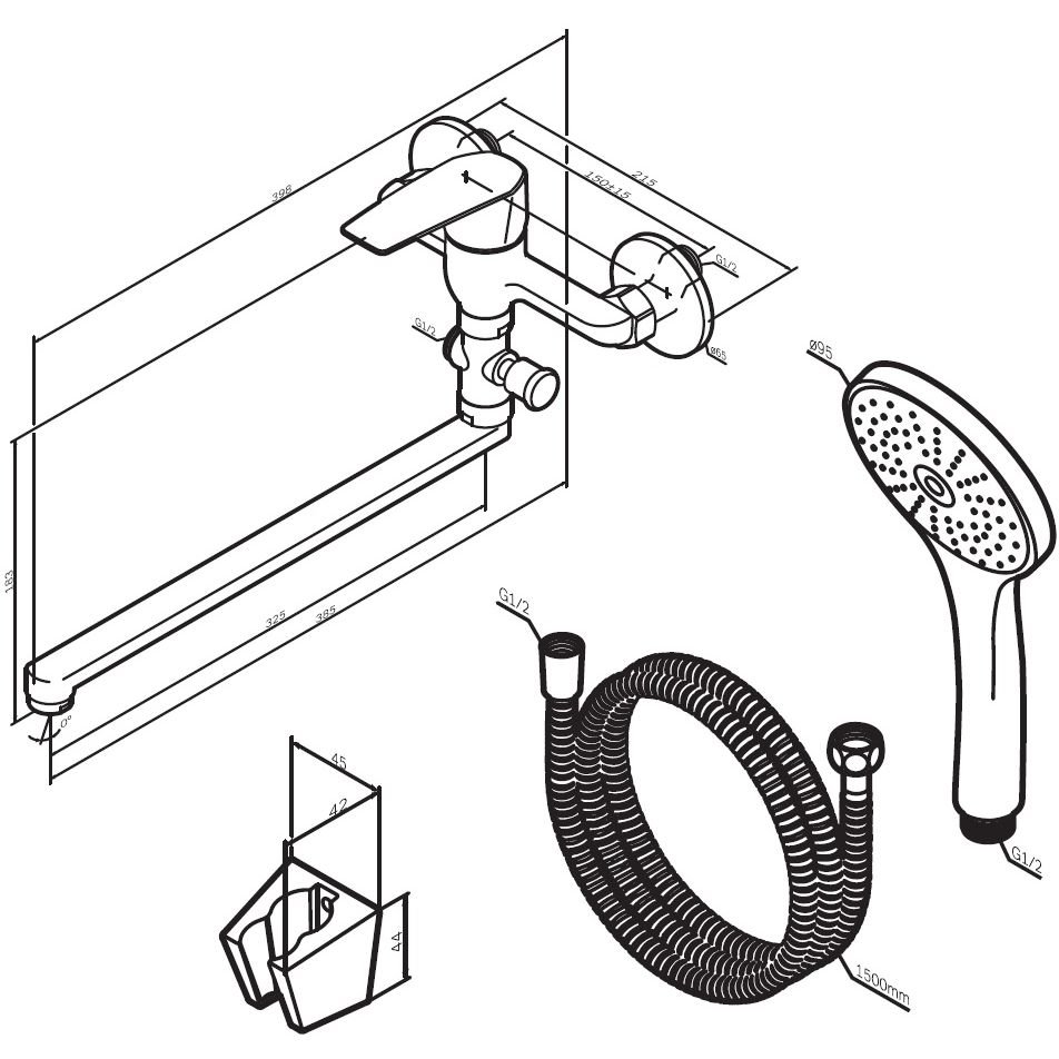 Универсальный длинный излив позволяет использовать смеситель как для ванны, так и для рядом стоящей раковины. Функциональный держатель для ручного душа на два положения добавит удобства использования. Душевой шланг длиной 150 см позволит наслаждаться душем даже высокому человеку.
