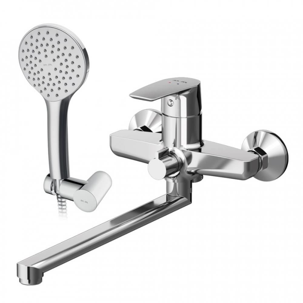 Доставка Смеситель Am.Pm (Ам.Пм) для ванны и душа с длинным изливом и душевым набором Gem F90A95000 хром из Москва в районы и города ЮВАО, ЮЗАО, ЮАО, Новомосковский АО, Одинцово, Подольск, Щербинка, Троицк, Строительный рынок Славянский мир, 41-й км МКАД, бывшая Мельница, Красногорск, Домодедово, Тёплый стан, Коммунарка, Мосрентген, Видное, Мамыри, Краснознаменск