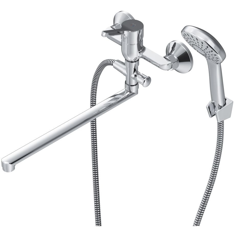 Стильное универсальное решение для ванной комнаты - качественный смеситель для ванны и душа с длинным поворотным изливом с душевым набором.