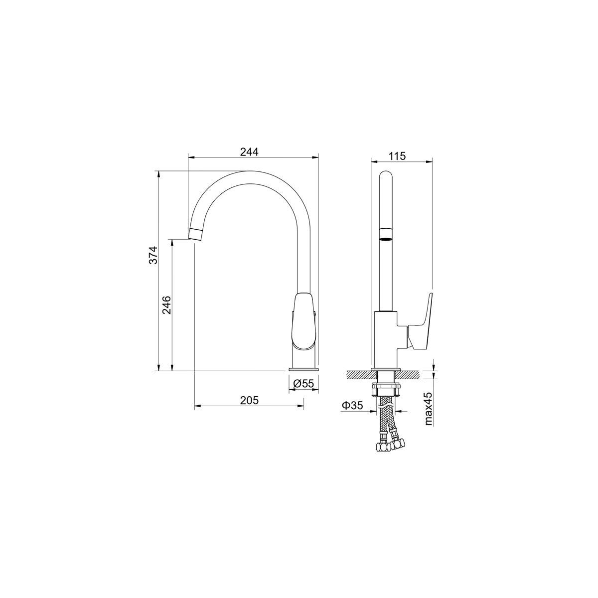 Высота излива (мм):246 p>