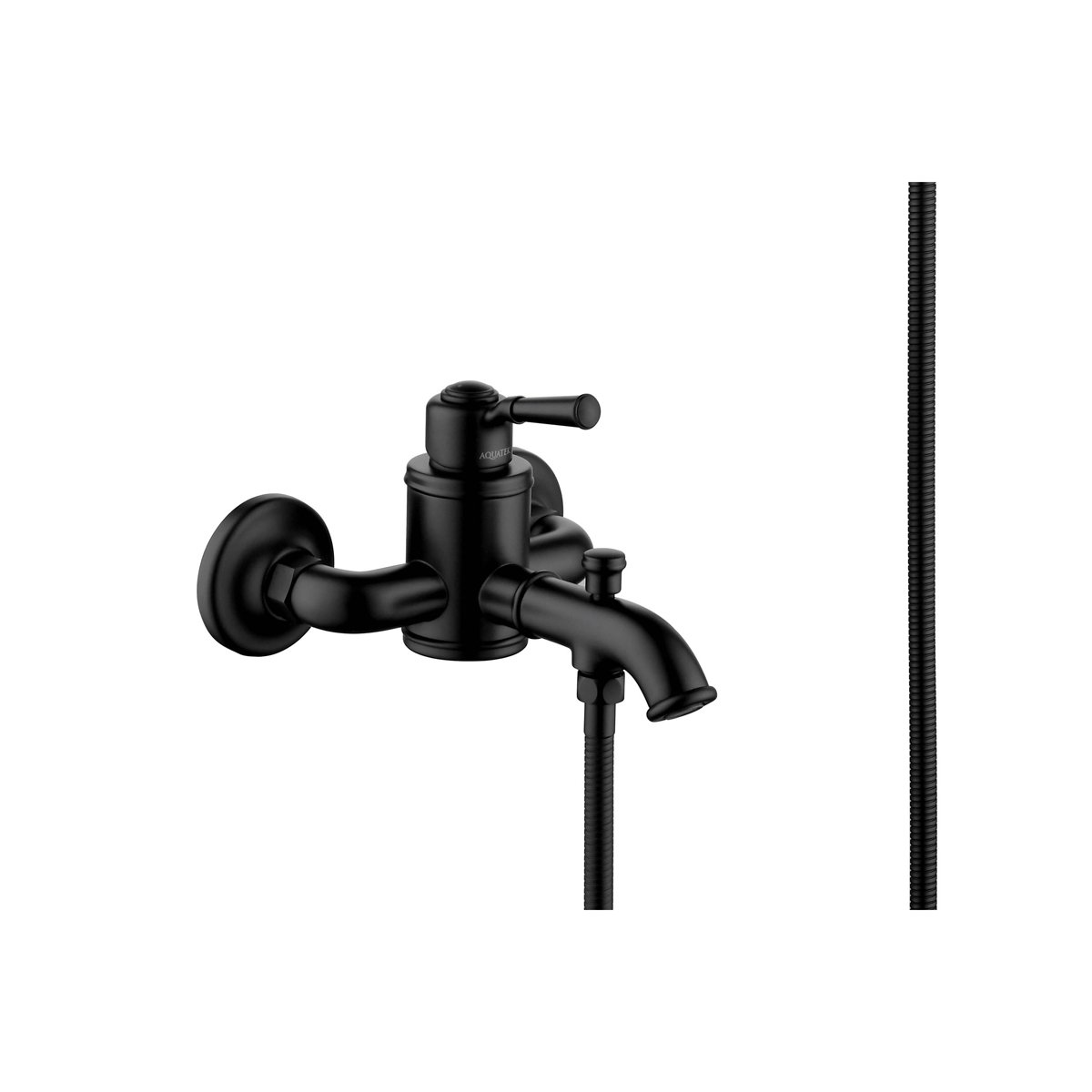 Смеситель Aquatek (Акватек) Классик для ванны с душевым набором, матовый черный AQ1549MB