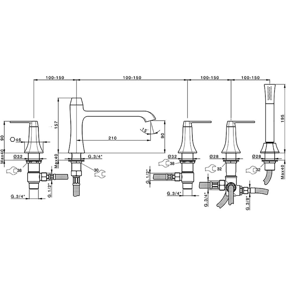 CISAL Cherie Смеситель на борт ванны на 5 отверстий, излив 210 мм, цвет хром/черный матовый