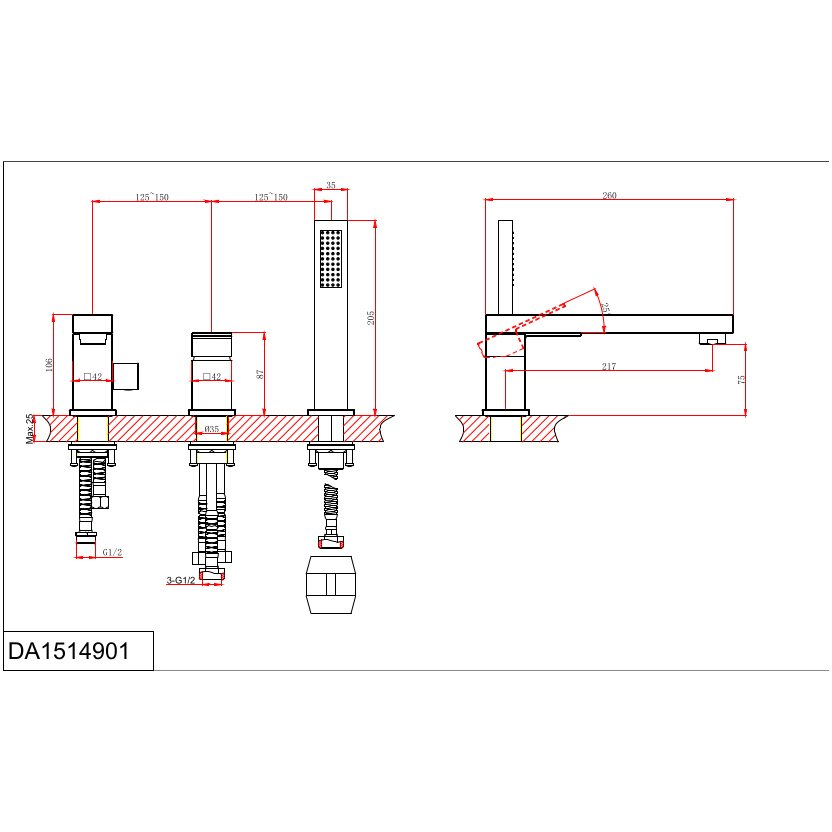 Смеситель DK (ДК) на борт ванны Bayern.Liszt (DA1514901) хром