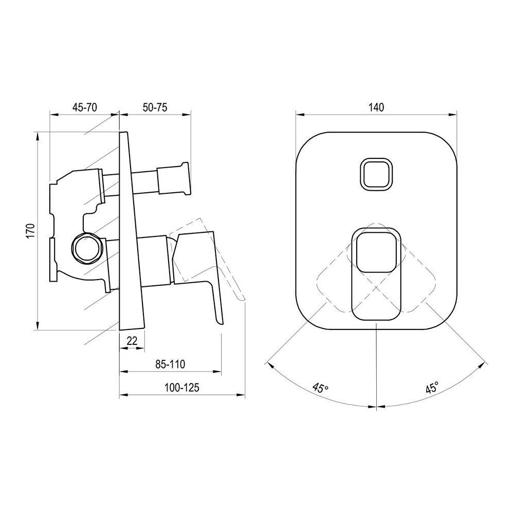 Ravak 10° TD 065.00 X070070 Встраиваемый смеситель для ванны - внешняя часть (хром). Описание: картридж (диаметр, материал): 35 мм, керамический; гарантия на смесители: 5 лет; подходит: к ваннам (заполнение переливом и вывод для ручного душа) или душевым уголкам, имеющим фиксированный и ручной душ. Встраиваемый механизм для смесителей скрытого монтажа R-box RB 070.50 X070052 не входит в комплектацию смесителя, его нужно докупать отдельно. R-box содержит материал для крепления к стене, но не содержит подключение к воде и другие водоинсталляционные материалы. R-box c помощью пластиковой декоративной заглушки внутреннего корпуса смесителя обеспечивает полную функциональность водопроводной системы даже при демонтаже верхней части смесителя. С помощью этой заглушки можно выпустить воздух с водопроводной системы, не останавливая при этом воду. R-box имеет четко обозначенную верхнюю часть для правильной установки смесителя. Арматура установленного на стене смесителя слегка наклонена на 10° по направлению к пользователю, что делает управление им еще более удобным, дизайн еще более "встречным", а удовольствие от пользования смесителем еще большим. Смеситель предусмотрен для использования встраиваемого механизма R-box, который значительно упрощает его работу и улучшает конечный результат.