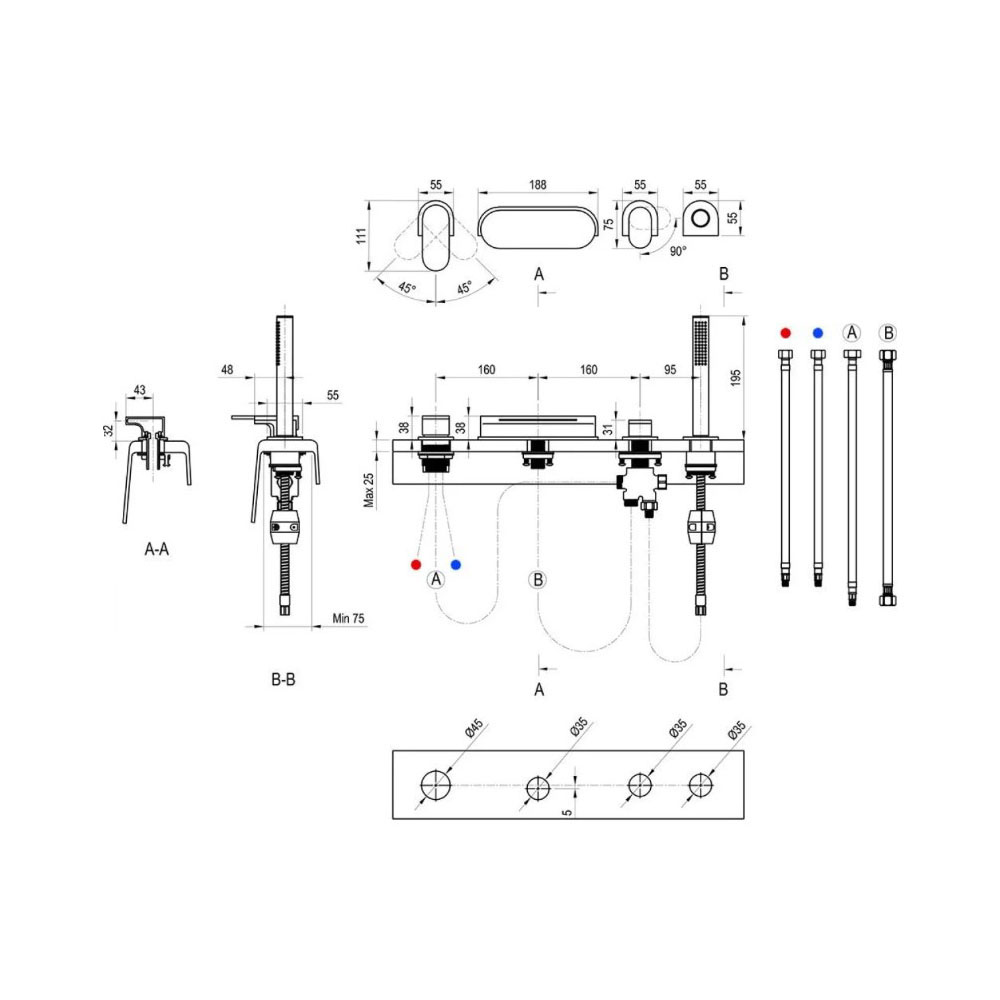 Смеситель Hansen (Хансен) для ванны H22006 хром