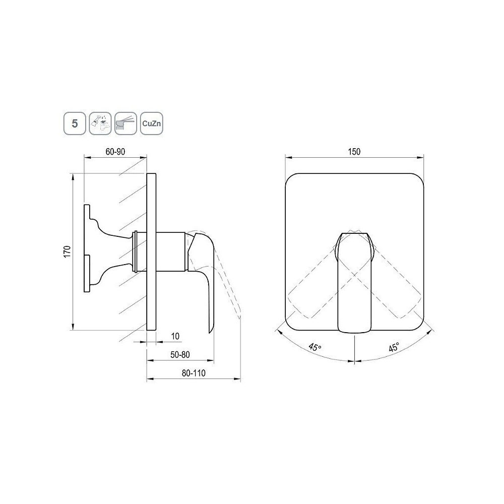Ravak Flat FL 066.20 X070180 Встраиваемый смеситель для душа (черный матовый). Смеситель скрытого монтажа без переключателя Flat black мы предлагаем для душевых зон с одной душевой лейкой или для ванн с заполнением через перелив без возможности подключения душа. Плавное управление рычагом смесителя обеспечивает идеальное регулирование потока и температуры воды. Смеситель устанавливается на предварительно вмонтированный в стену базовый блок R-Box, приобретается дополнительно Ravak R-box Vari X070139 Встраиваемый механизм смесителя скрытого монтажа, что значительно облегчает монтаж смесителя и улучшает результат всей работы. Для комплексного решения и согласованности дизайна ванной комнаты рекомендуется комбинировать с другими смесителями Flat black. Матовые черные смесители можно комбинировать с любым другим цветом и найти применение в самых разных стилях ванной комнаты. Картридж (диаметр, материал): 35 мм, керамический, гарантия 5 лет, Чехия.