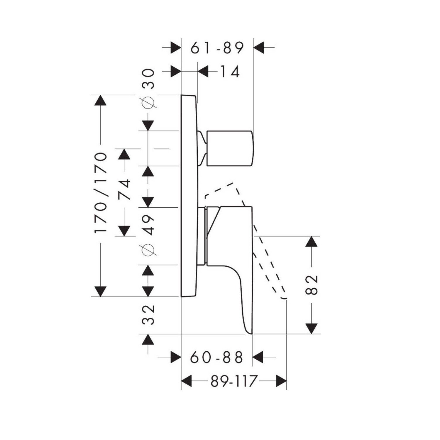 Смеситель для ванны Axor (Аксор) Citterio M, однорычажный, скрытого монтажа, 34427330 матовый черный хром