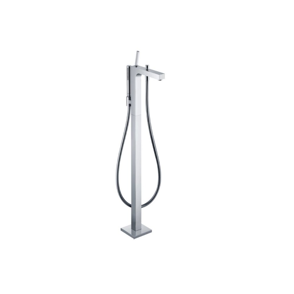 Однорычажный смеситель для ванны напольный, ручной душ-"палочка", шланг для душа, держатель для душа