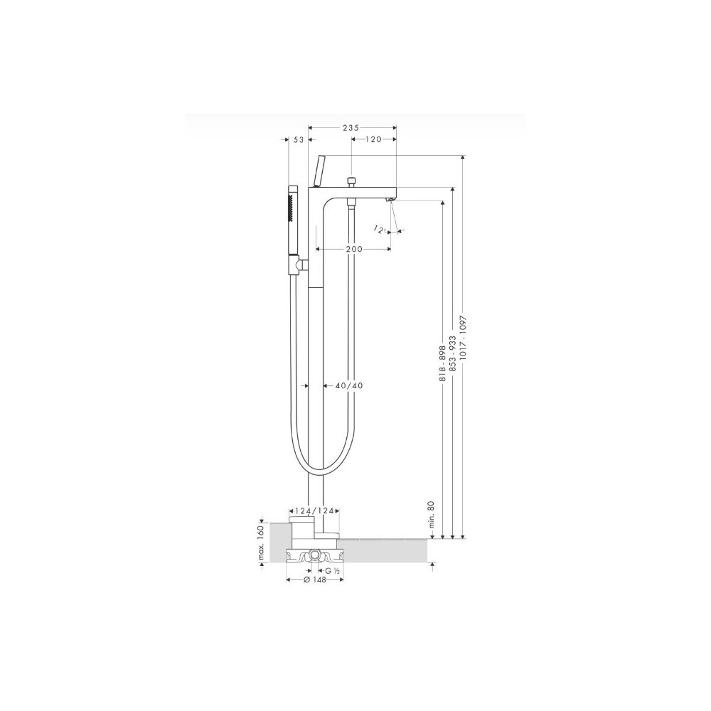 Смеситель для ванны Axor (Аксор) Citterio, однорычажный, напольный, ½’ (нужна СЧ 10452180) 39451000 хром