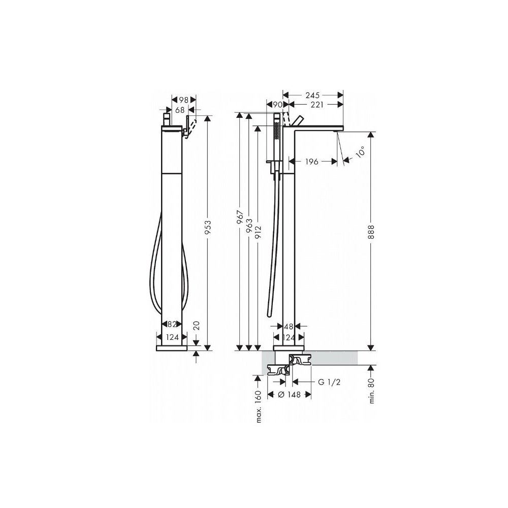 Смеситель для ванны Axor (Аксор) MyEdition, однорычажный, напольный, 47440600 Хром,черный