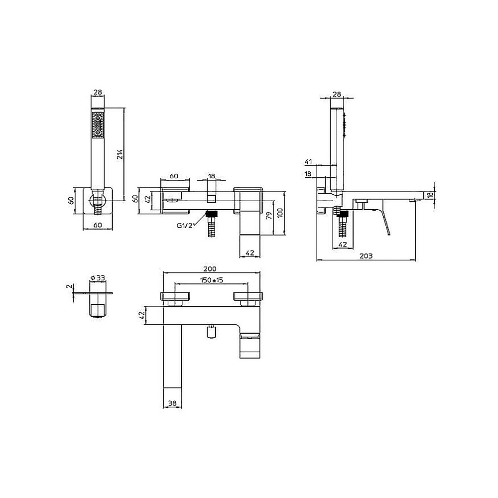 Смеситель для ванны Bossini (Боссини) AKI лейка Cube керамический картридж шланг 125 см Z00726.073 черный матовый