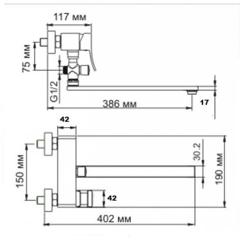 Длина излива (мм):386 p>