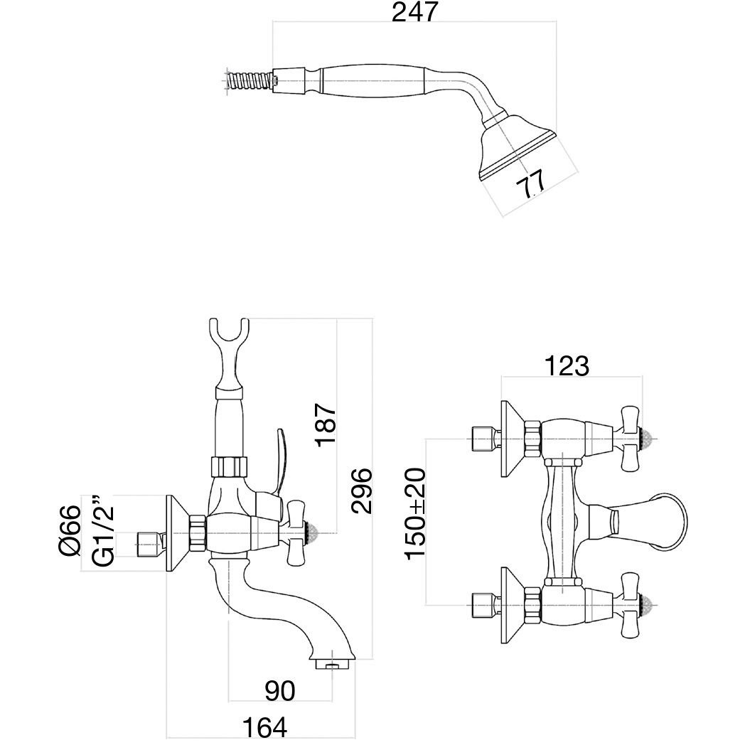 Смеситель для ванны BELZ (БЕЛЗ) B618 с аксессуарами, длинный излив (B22618) хром