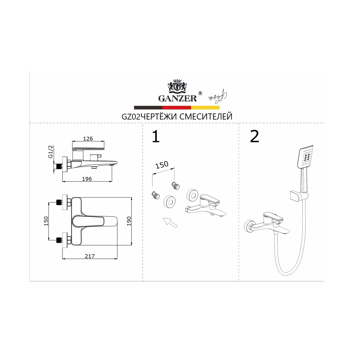Душевой комплект для ванны Ganzer (Ганзер) GZ77065 Хром